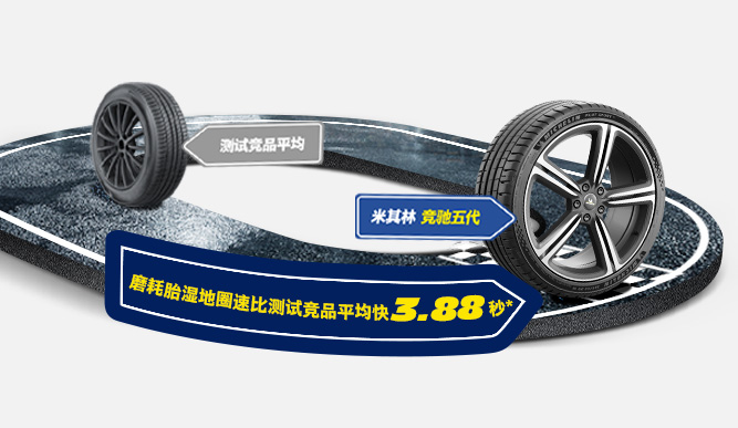 快连 竞驰5 磨耗胎湿地圈速比测试竞品平均值快 3.88 秒*